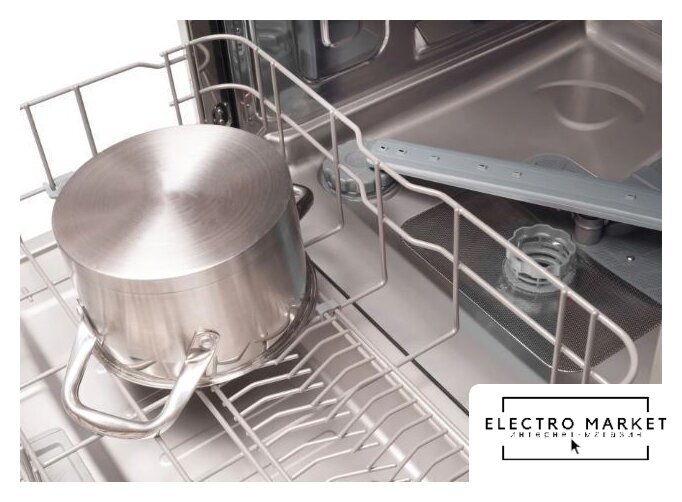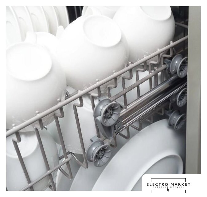 загрузка на 12 комплектов посуды, электронное управление, 4 программы, 59.8x55x82 см, нержавеющая сталь/черный цвет, сушка: стандартная (конденсация), индикация на полу: луч
