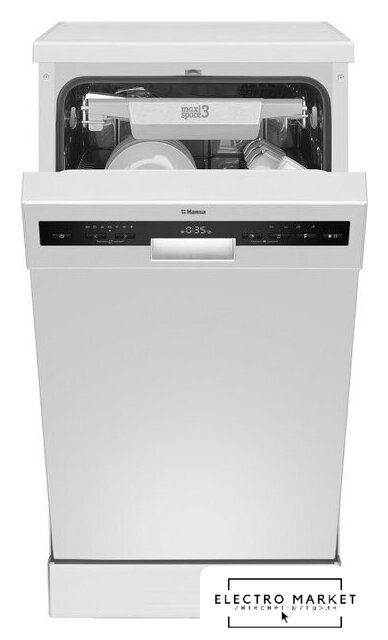 загрузка на 9 комплектов посуды, электронное управление, 5 программ, белый цвет, сушка: стандартная (конденсация), индикация на полу: нет