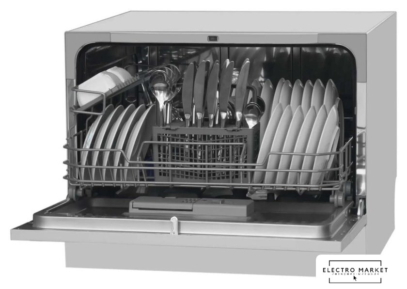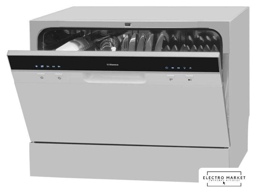 загрузка на 6 комплектов посуды, электронное управление, 6 программ, белый цвет, сушка: конденсационная, индикация на полу: нет