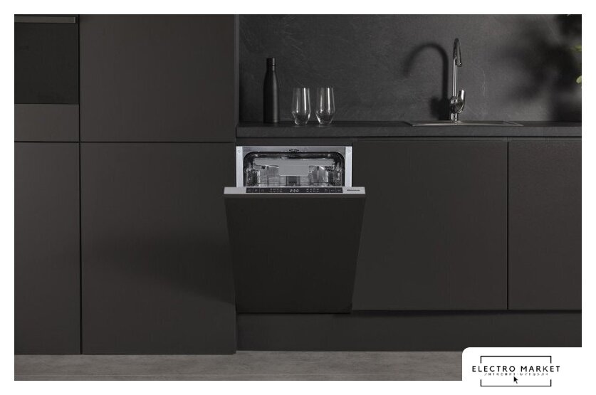 загрузка на 15 комплектов посуды, электронное управление, 9 программ, 59.8x55x82 см, черный цвет, сушка: стандартная (конденсация)/с открыванием дверцы, индикация на полу: луч