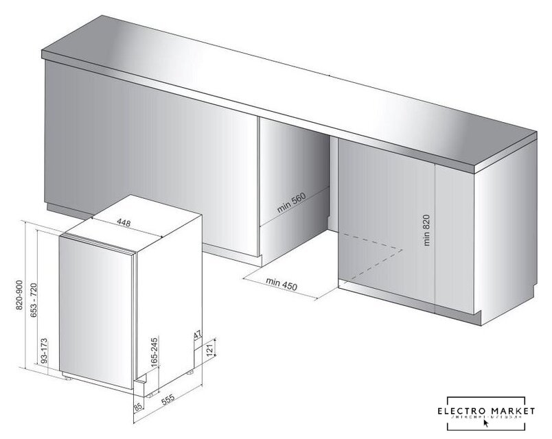 загрузка на 9 комплектов посуды, электронное управление, 5 программ, 44.8x55.8x81.5 см, белый цвет, сушка: стандартная (конденсация), индикация на полу: нет