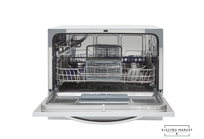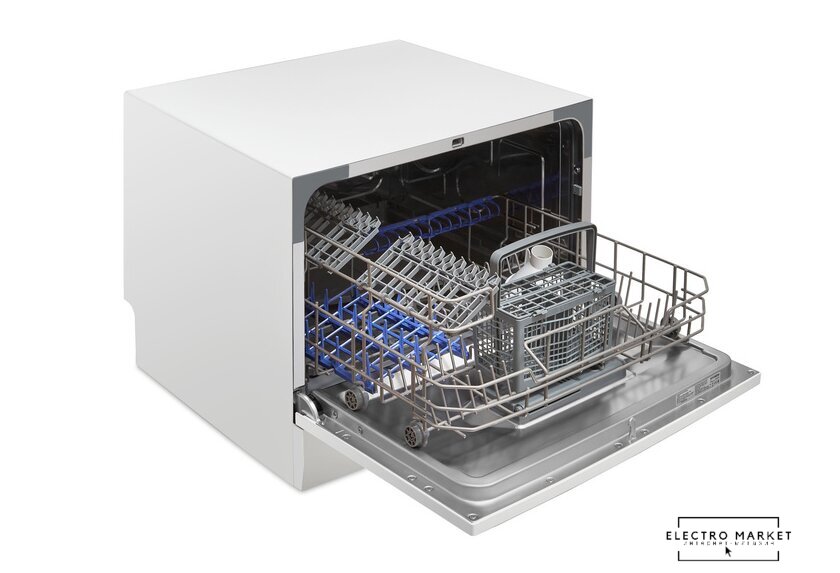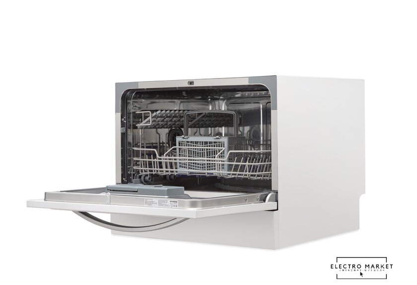 загрузка на 6 комплектов посуды, электронное управление, 6 программ, белый цвет, сушка: конденсационная, индикация на полу: нет