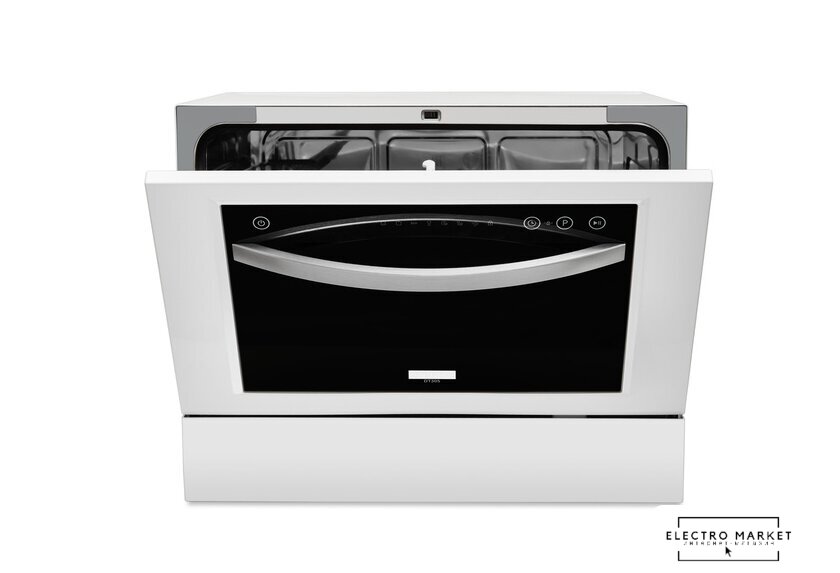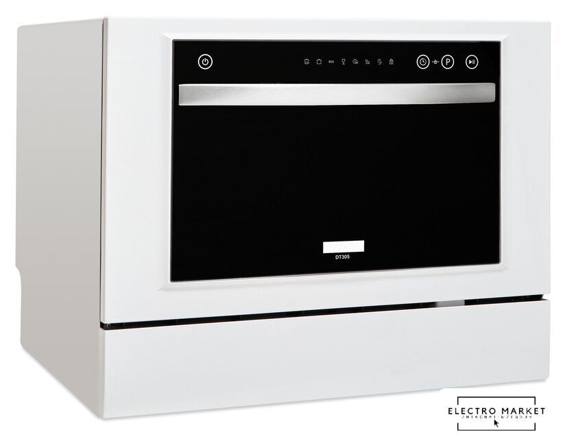 загрузка на 3 комплекта посуды, сенсорное управление, 5 программ, белый цвет, сушка: с открыванием дверцы, индикация на полу: нет