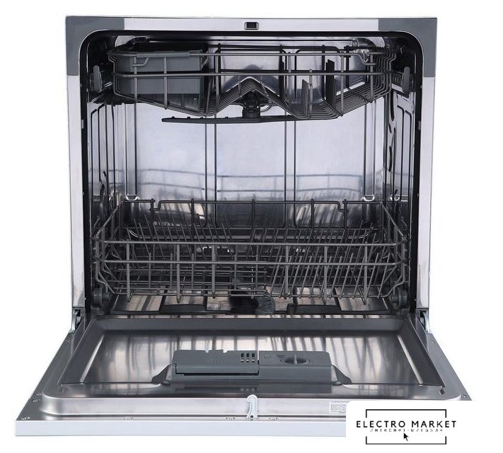 загрузка на 6 комплектов посуды, электронное управление, 7 программ, серебристый цвет, сушка: стандартная (конденсация), индикация на полу: нет