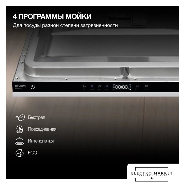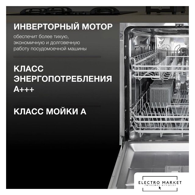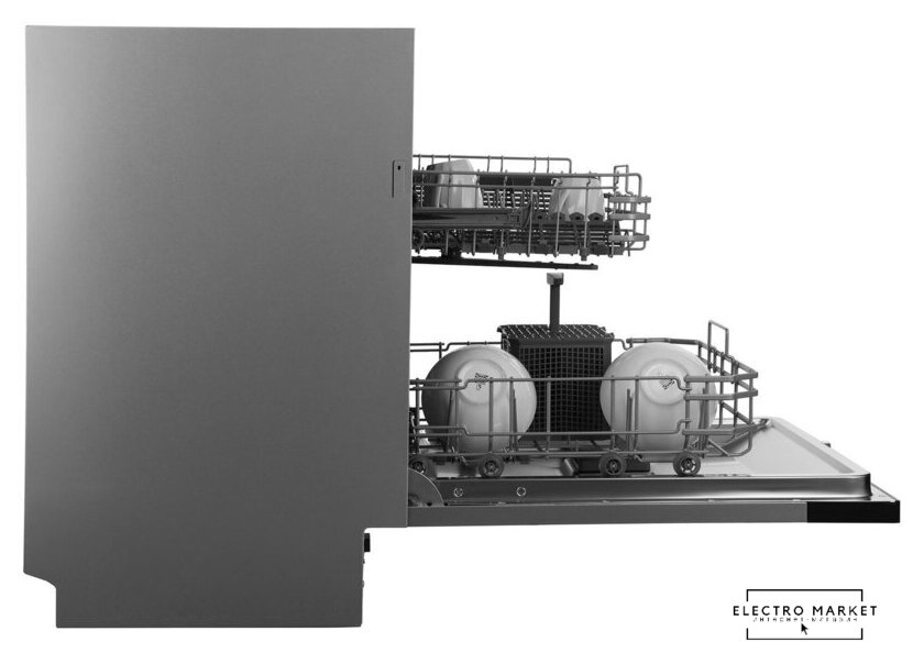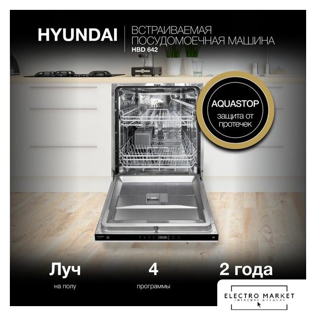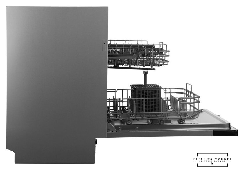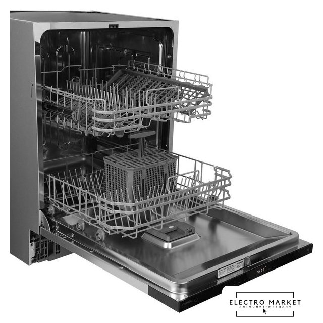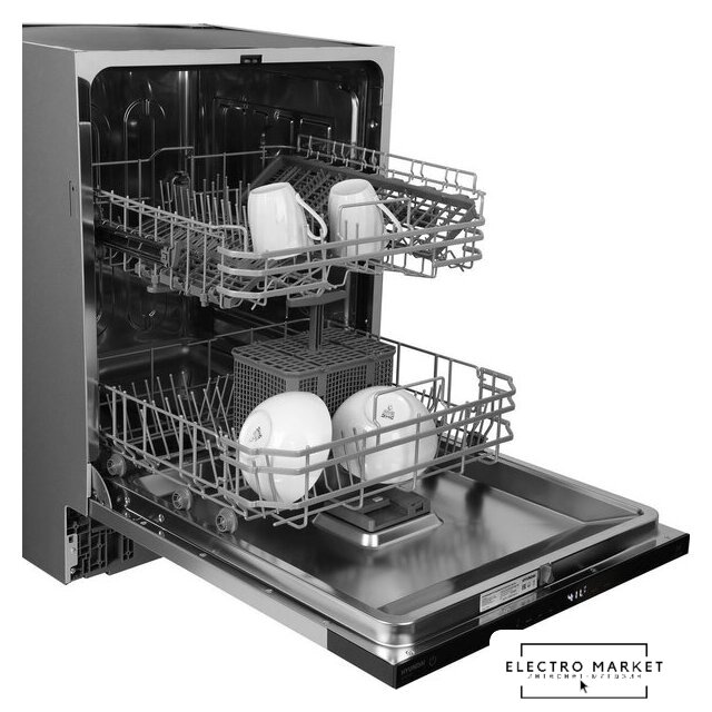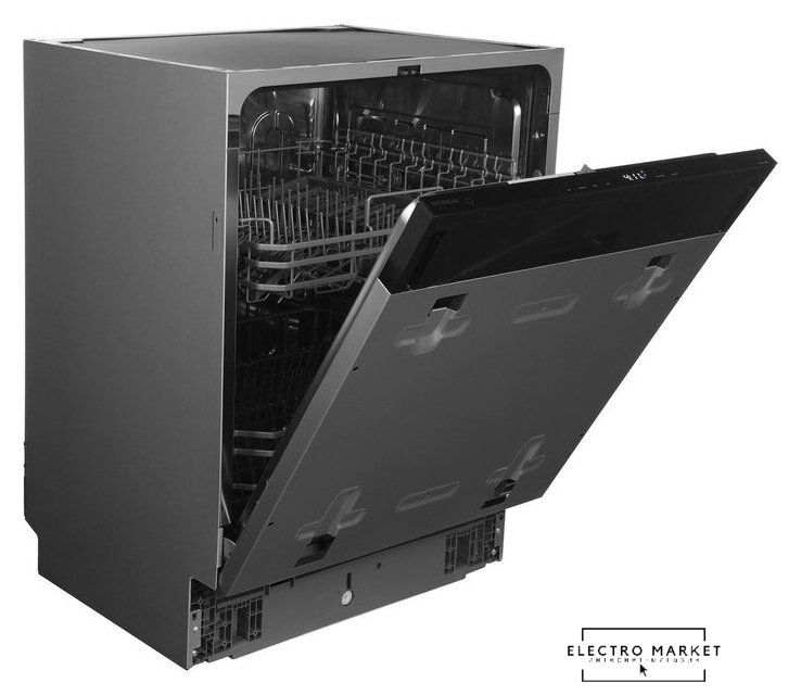 загрузка на 10 комплектов посуды, электронное управление, 6 программ, черный цвет, сушка: конденсационная, индикация на полу: луч