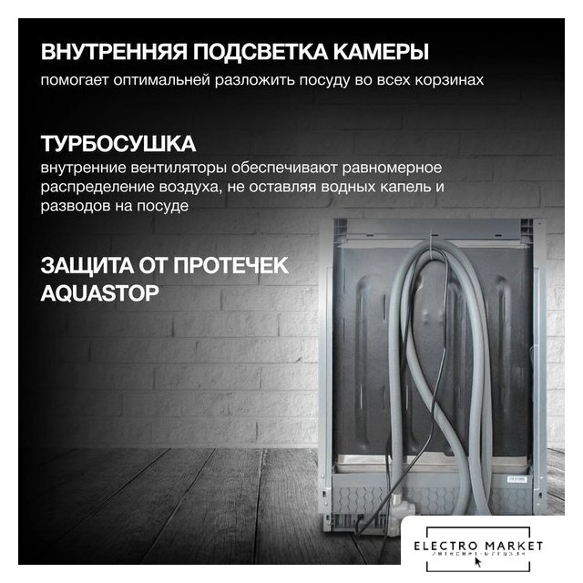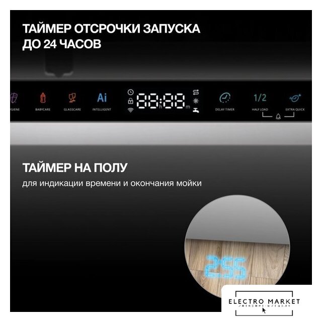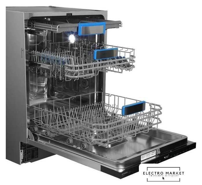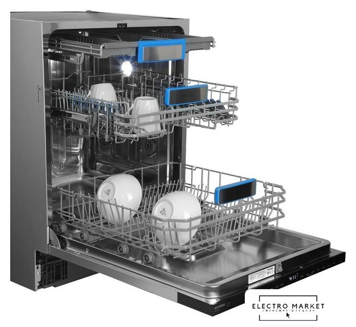 | Дополнительные опции | сокращение времени мойки, дополнительная сушка, усиление интенсивности мойки (гигиеническая мойка), половинная загрузка (экономия воды), программа самоочистки |