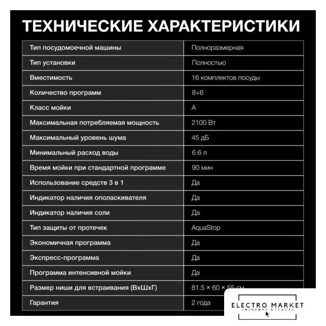 | Максимальная загрузка (комплекты посуды) | 16 |