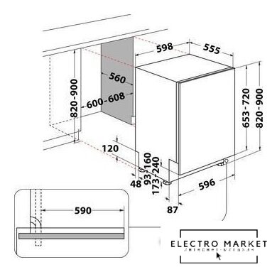 загрузка на 15 комплектов посуды, сенсорное управление, 9 программ, 59.8×55×82 см, черный цвет, сушка: вентиляционная, половинная загрузка, индикация на полу: луч