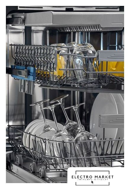 | Особенности верхней корзины | регулировка положения по высоте, резиновые держатели для бокалов |