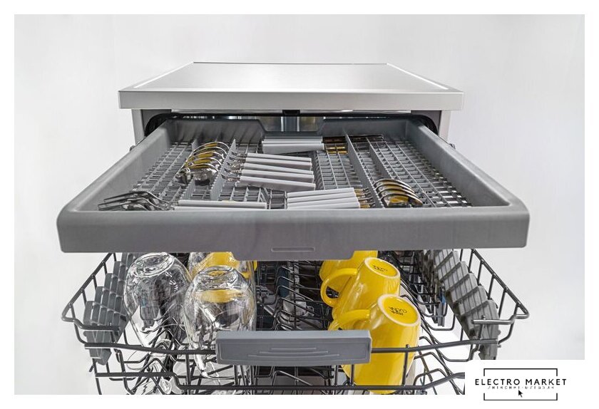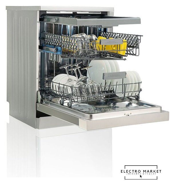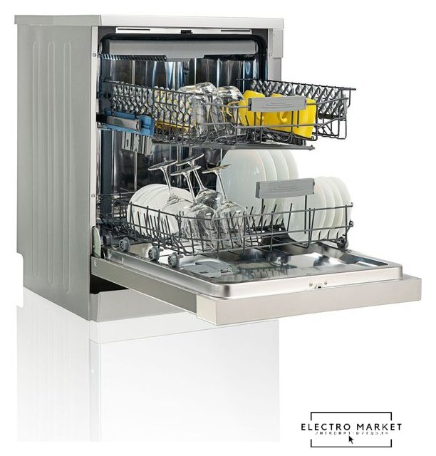 загрузка на 14 комплектов посуды, электронное управление, 7 программ, нержавеющая сталь цвет, сушка: стандартная (конденсация)/с открыванием дверцы, индикация на полу: нет