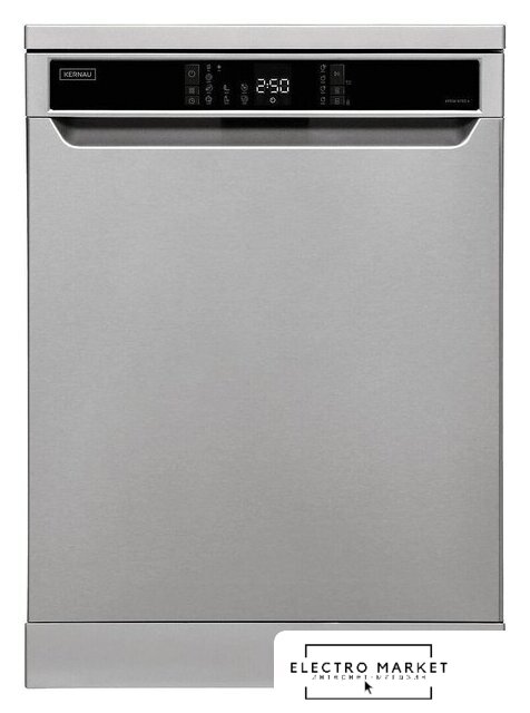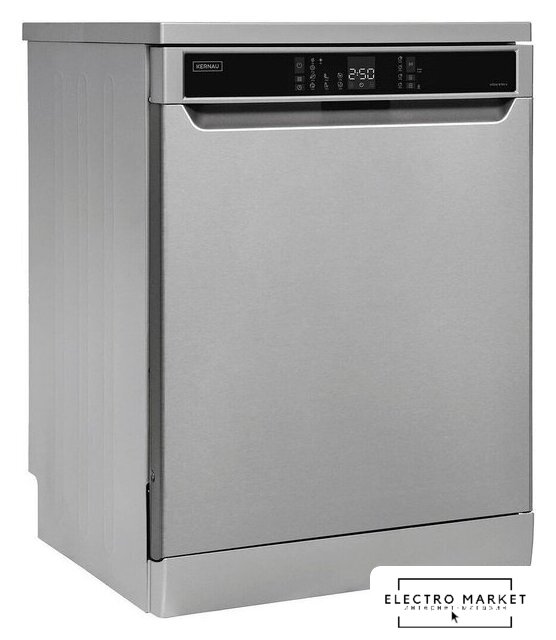 загрузка на 14 комплектов посуды, электронное управление, 7 программ, серебристый цвет, сушка: с теплообменником, индикация на полу: нет