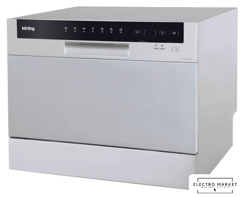 загрузка на 6 комплектов посуды, электронное управление, 7 программ, серебристый цвет, сушка: стандартная (конденсация), индикация на полу: нет