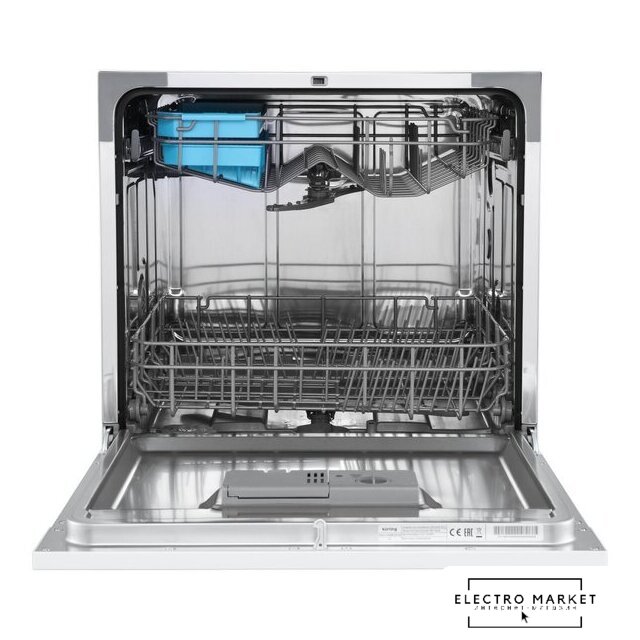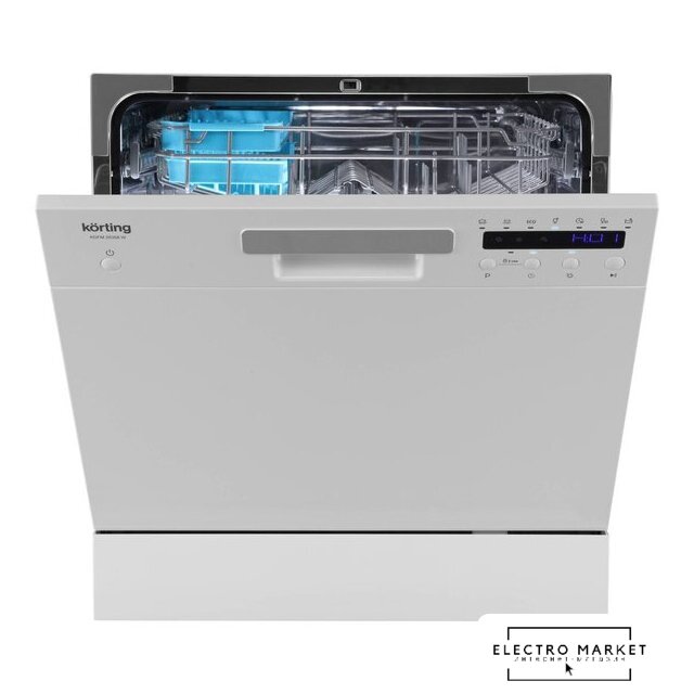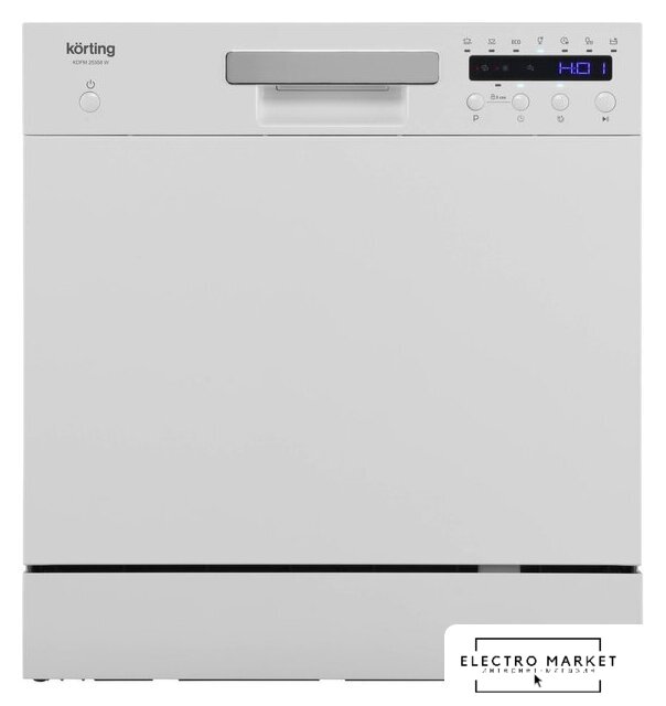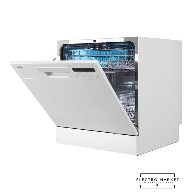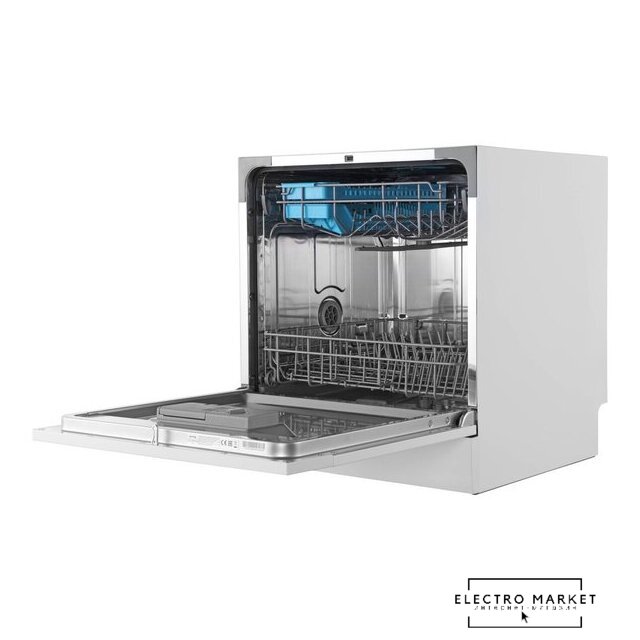 загрузка на 9 комплектов посуды, электронное управление, 5 программ, белый цвет, сушка: конденсационная, индикация на полу: нет