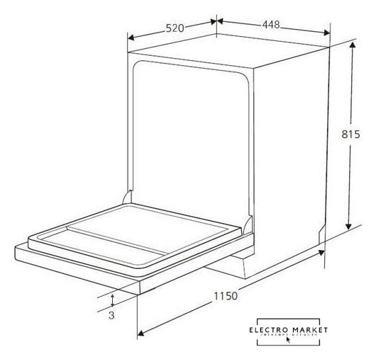загрузка на 10 комплектов посуды, электронное управление, 4 программы, 44.8x55x82 см, нержавеющая сталь цвет, сушка: стандартная (конденсация)/с открыванием дверцы, индикация на полу: луч