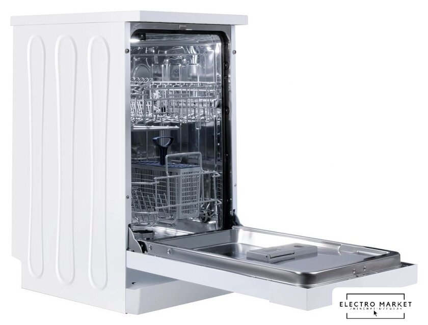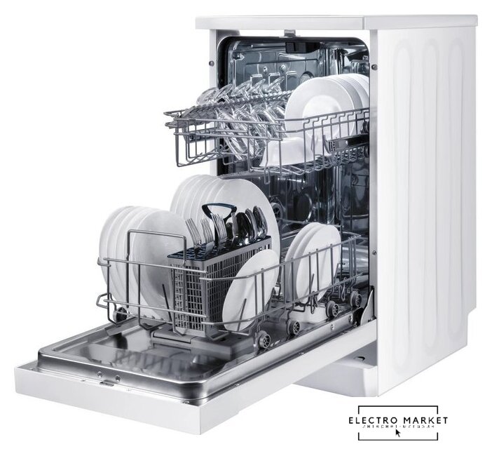 загрузка на 9 комплектов посуды, механическое управление, 5 программ, белый цвет, сушка: стандартная (конденсация), индикация на полу: нет