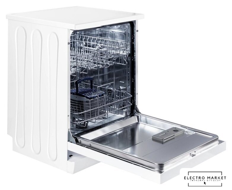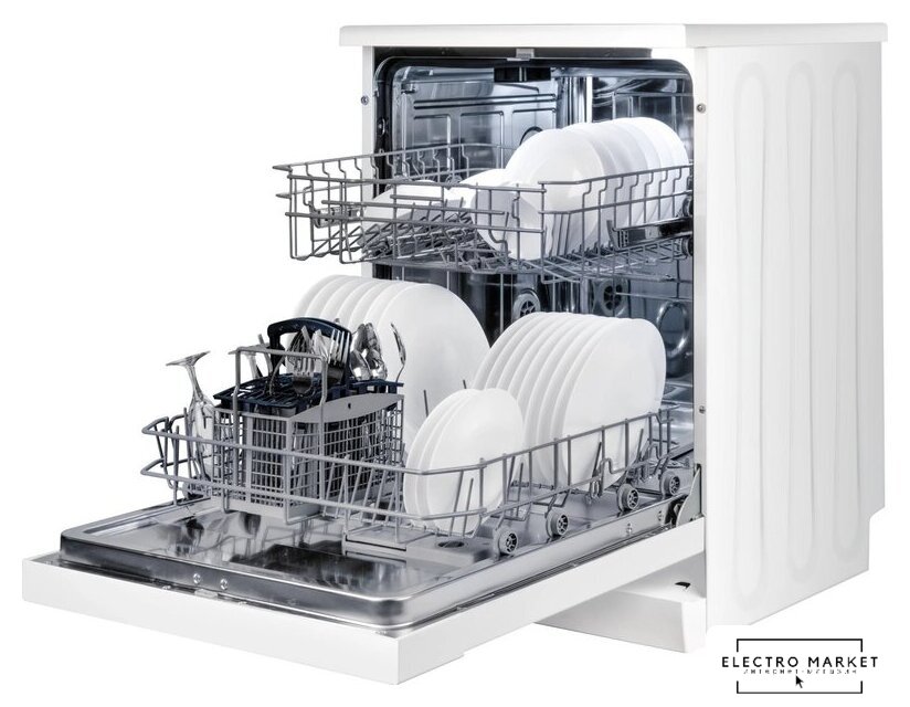 загрузка на 12 комплектов посуды, электронное управление, 5 программ, белый цвет, сушка: стандартная (конденсация), индикация на полу: нет