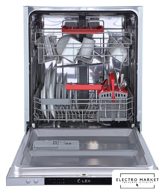 загрузка на 14 комплектов посуды, электронное управление, 6 программ, белый/черный цвет, сушка: стандартная (конденсация)/с открыванием дверцы, индикация на полу: луч
