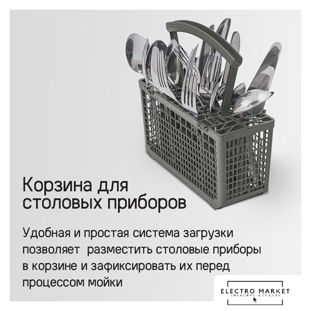загрузка на 12 комплектов посуды, электронное управление, 5 программ, 59.8×55×82 см, серебристый/черный цвет, сушка: активная конденсация, индикация на полу: нет