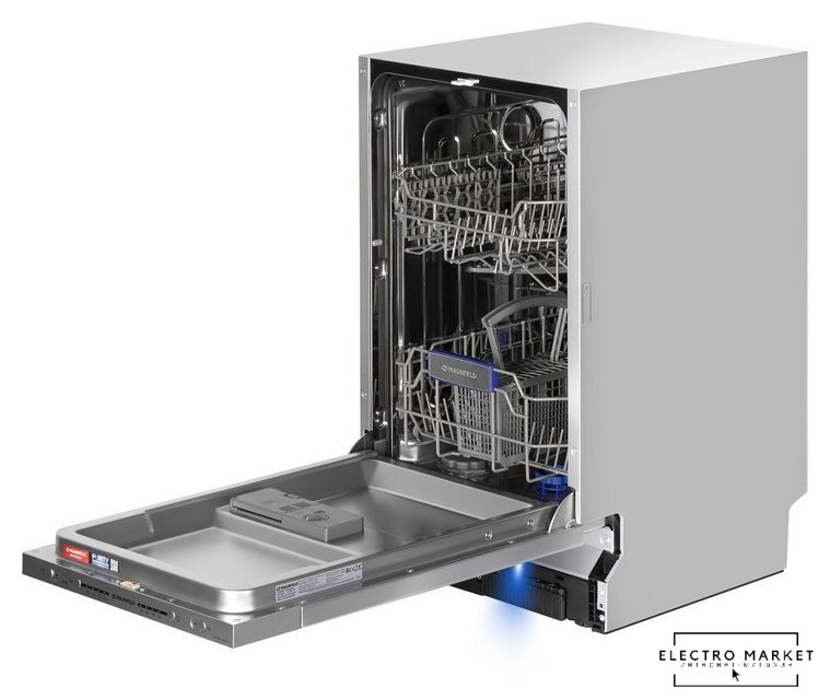 загрузка на 9 комплектов посуды, электронное управление, 5 программ, 44.6x55x82 см, черный цвет, сушка: с открыванием дверцы/с теплообменником, индикация на полу: нет