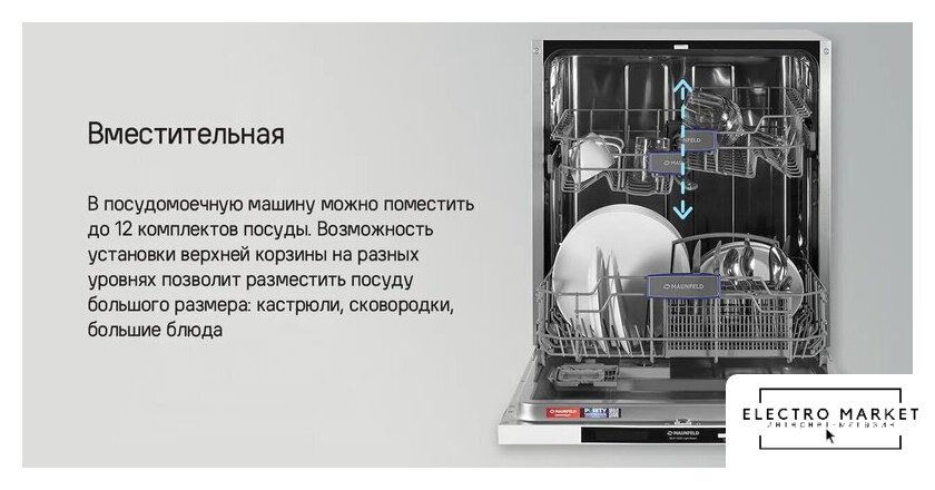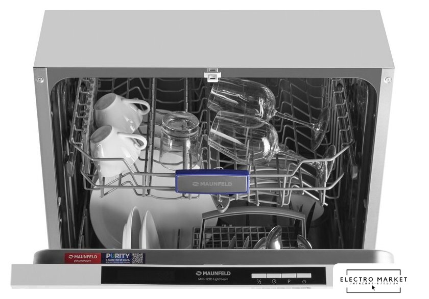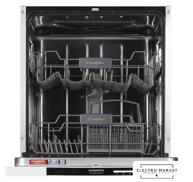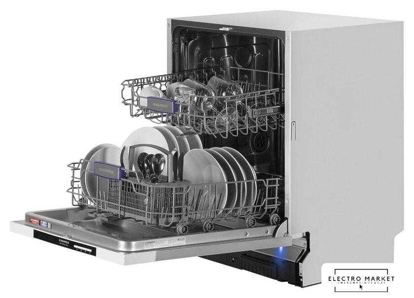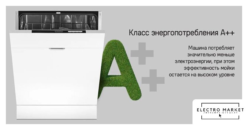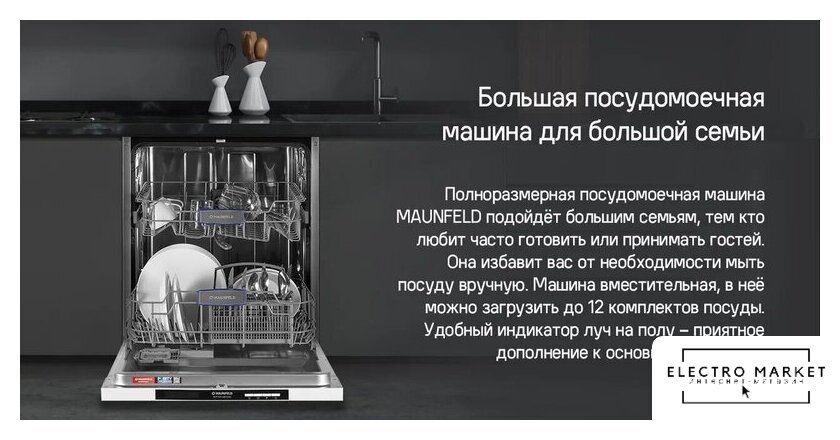 загрузка на 12 комплектов посуды, электронное управление, 4 программы, 59.8x55x82 см, нержавеющая сталь/черный цвет, сушка: стандартная (конденсация), индикация на полу: луч