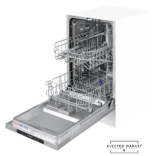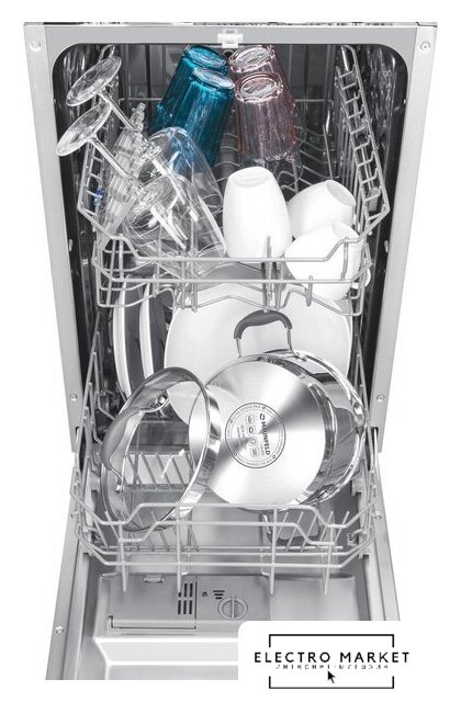 загрузка на 9 комплектов посуды, электронное управление, 4 программы, 44.8x55x82 см, нержавеющая сталь/черный цвет, сушка: стандартная (конденсация), индикация на полу: нет
