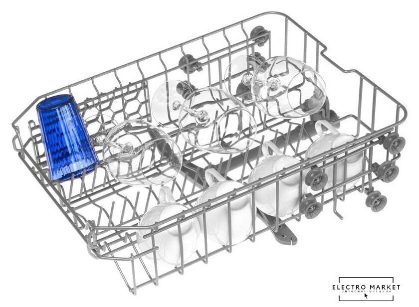 Особенности верхней корзины | регулировка положения по высоте, держатели для бокалов |
