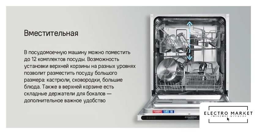 Особенности верхней корзины | регулировка положения по высоте, держатели для бокалов |