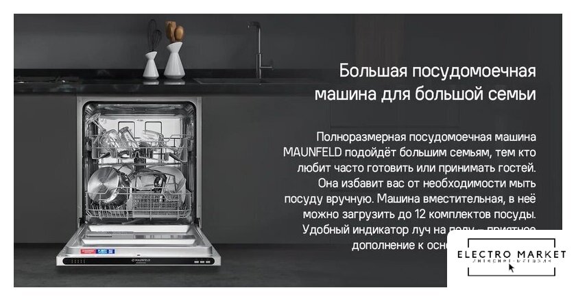 загрузка на 15 комплектов посуды, электронное управление, 7 программ, 59.4x55.8x81.5 см, черный цвет, сушка: стандартная (конденсация)/с открыванием дверцы, индикация на полу: луч