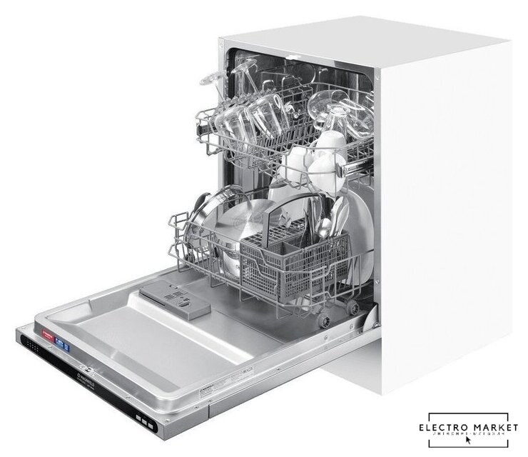 загрузка на 10 комплектов посуды, электронное управление, 6 программ, черный цвет, сушка: стандартная (конденсация)/с открыванием дверцы, индикация на полу: проекция дисплея