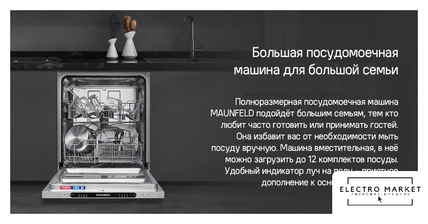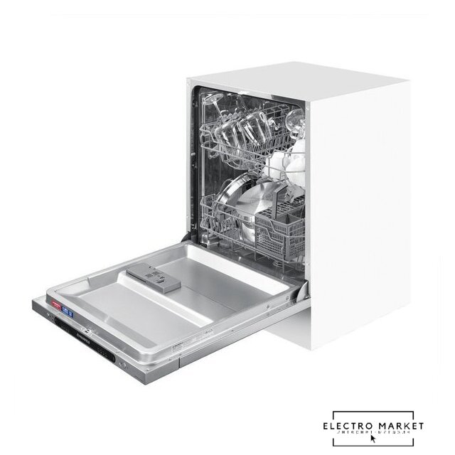 загрузка на 12 комплектов посуды, электронное управление, 6 программ, 59.8x55x82 см, черный цвет, сушка: стандартная (конденсация), индикация на полу: луч