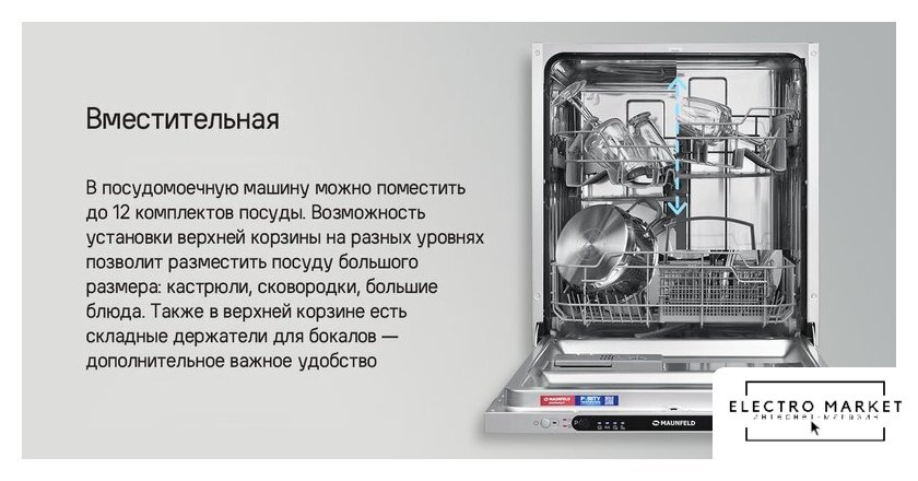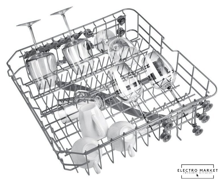 Особенности верхней корзины | регулировка положения по высоте, держатели для бокалов |