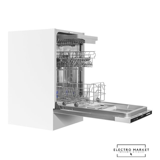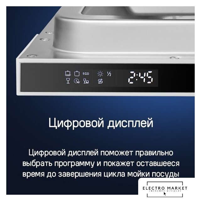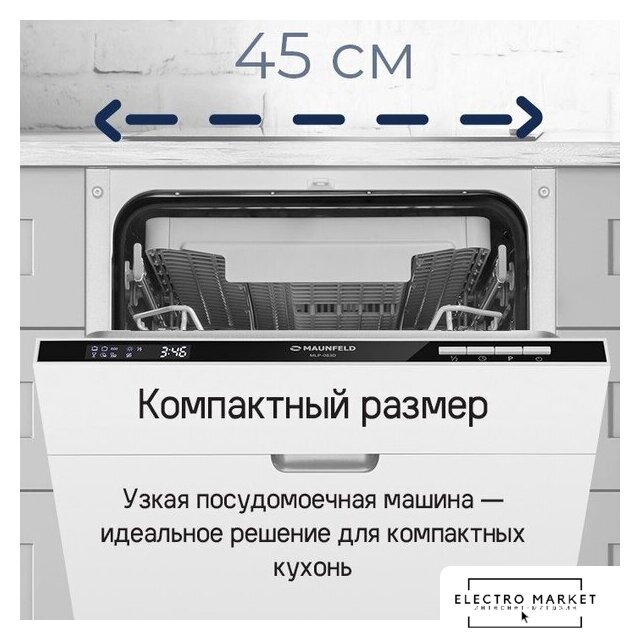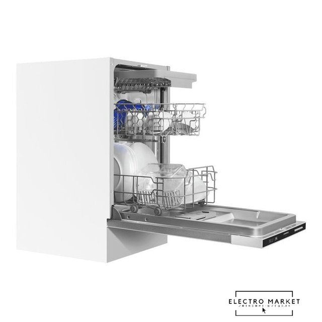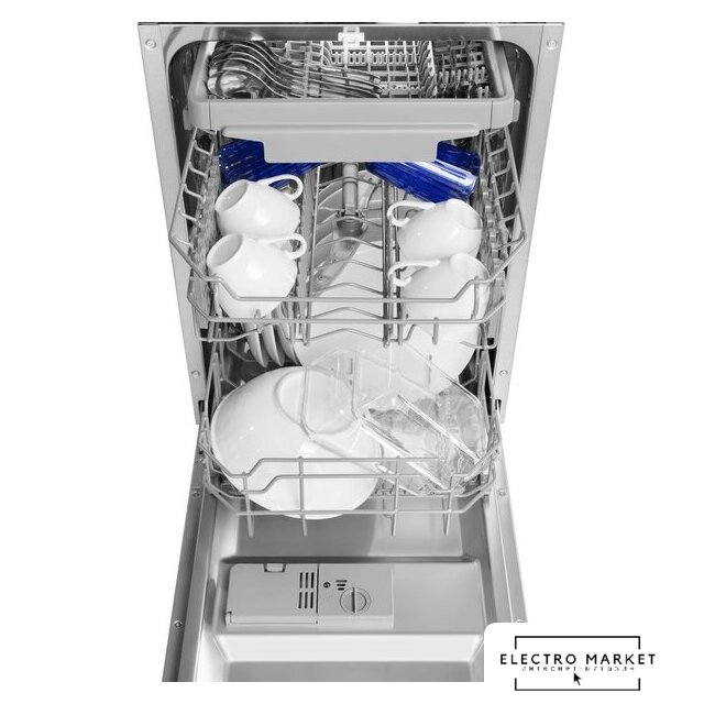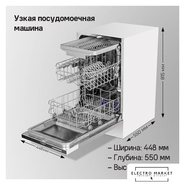 загрузка на 9 комплектов посуды, электронное управление, 5 программ, 44.8×55×82 см, нержавеющая сталь цвет, сушка: конденсационная, половинная загрузка, индикация на полу: нет