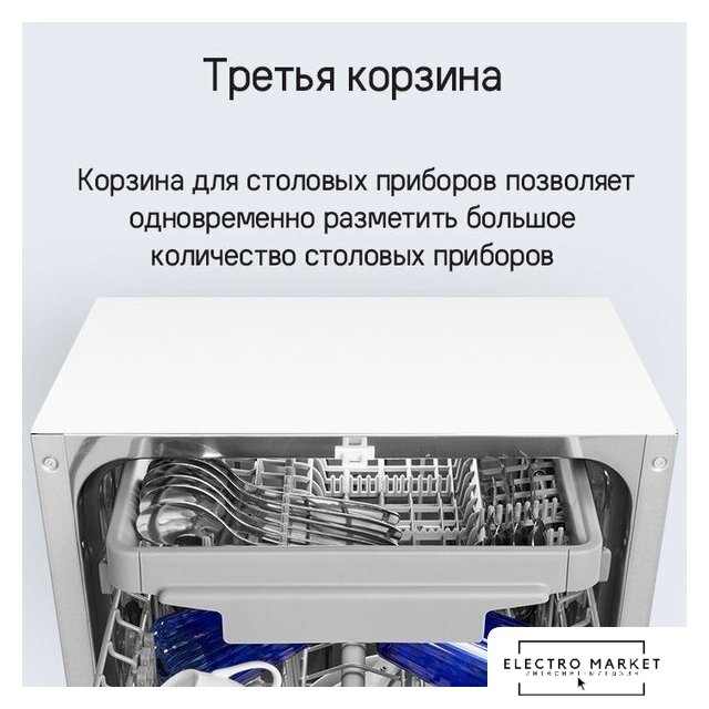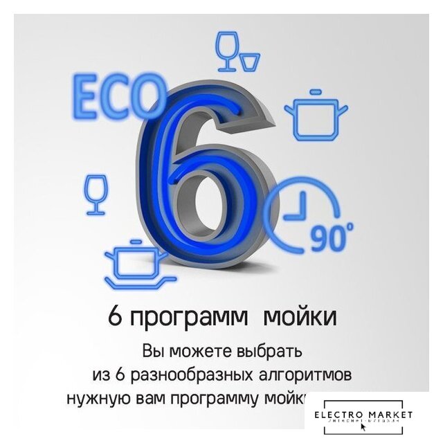 загрузка на 6 комплектов посуды, электронное управление, 6 программ, 55×51.8×45.8 см, белый цвет, сушка: конденсационная, индикация на полу: нет