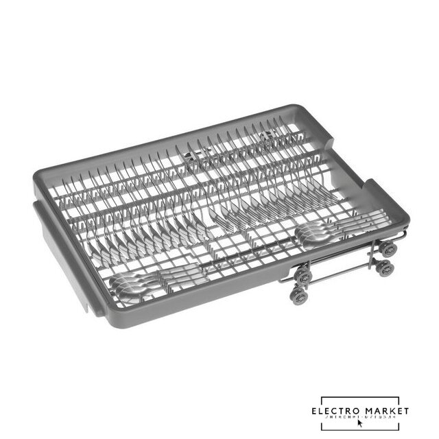 загрузка на 12 комплектов посуды, электронное управление, 6 программ, 59.8x55x82 см, серебристый/черный цвет, сушка: стандартная (конденсация), индикация на полу: нет