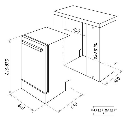 загрузка на 14 комплектов посуды, электронное управление, 5 программ, 59.8x55x82 см, черный цвет, сушка: стандартная (конденсация), индикация на полу: нет