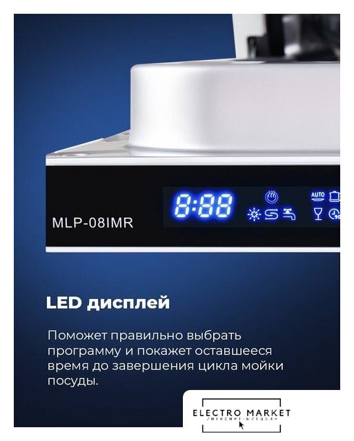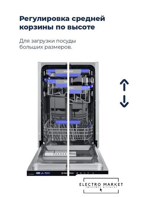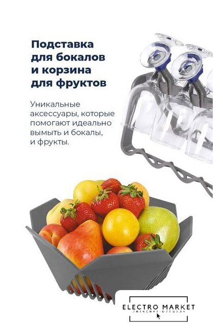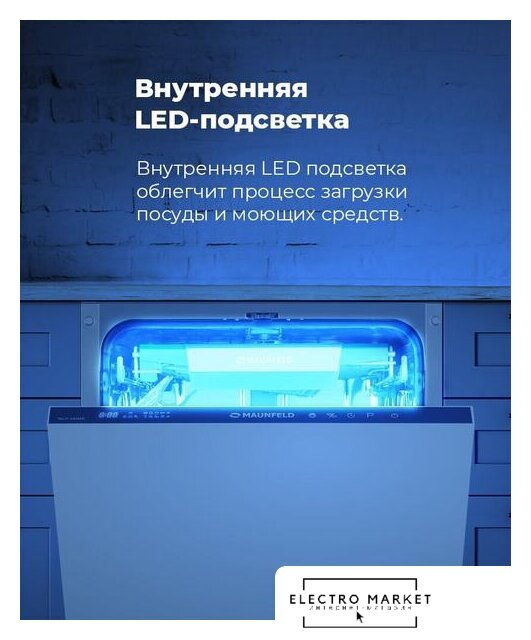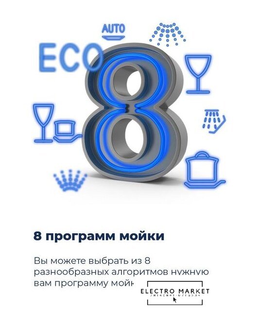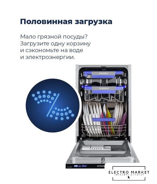 | Дополнительные опции | дополнительная сушка, половинная загрузка (экономия воды), усиление мойки в нижней корзине |