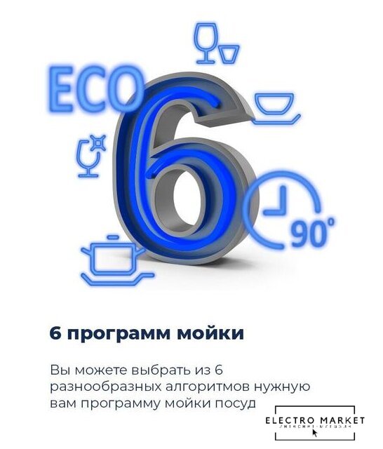 загрузка на 13 комплектов посуды, электронное управление, 6 программ, белый цвет, индикация на полу: нет