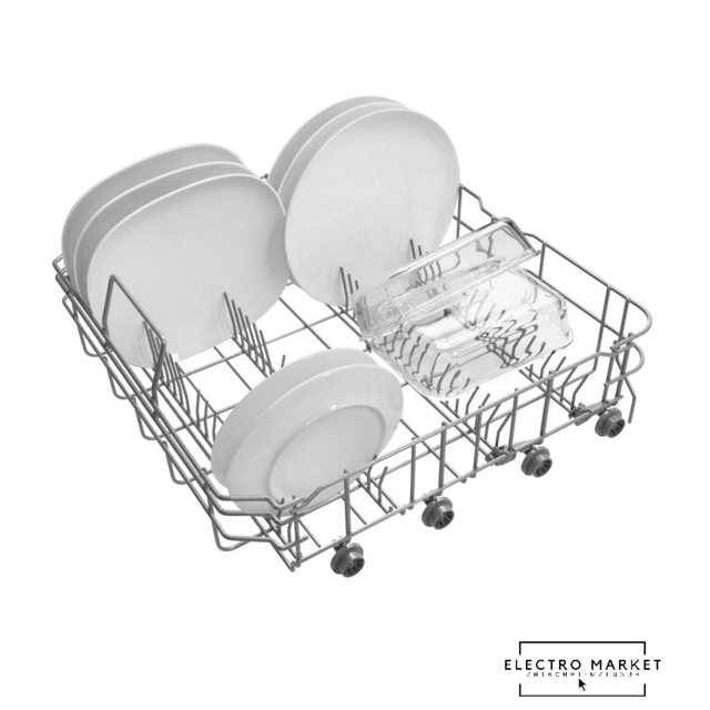 загрузка на 10 комплектов посуды, электронное управление, 6 программ, 44.8x55x82 см, серебристый цвет, сушка: стандартная (конденсация), индикация на полу: луч