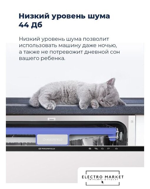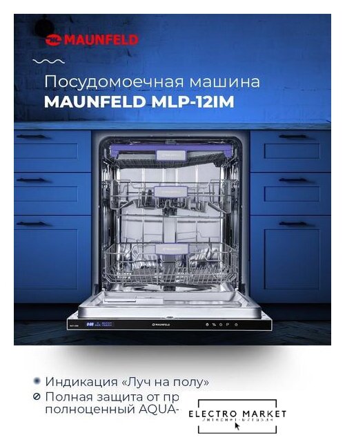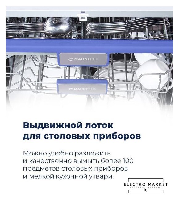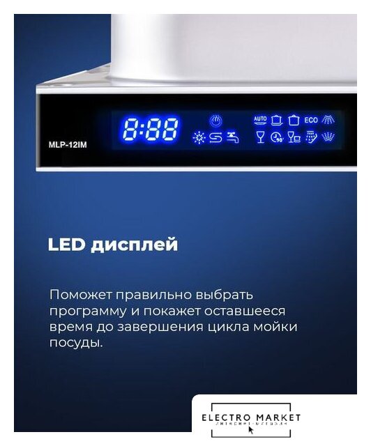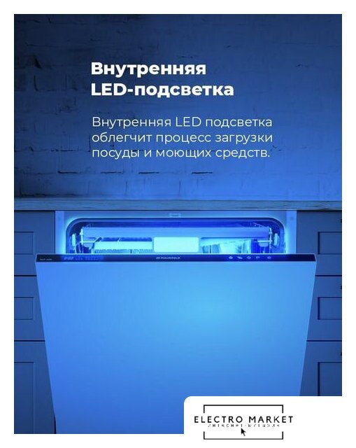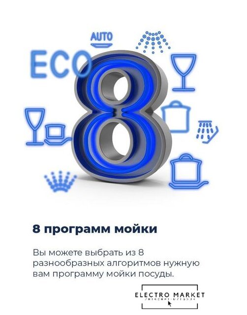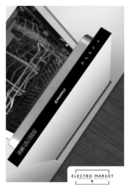 загрузка на 9 комплектов посуды, сенсорное управление, 8 программ, 44.6x55x82 см, черный цвет, сушка: с открыванием дверцы, индикация на полу: проекция дисплея