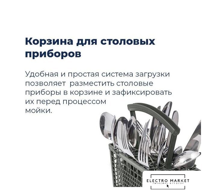 загрузка на 10 комплектов посуды, сенсорное управление, 8 программ, 44.8×55×82 см, нержавеющая сталь цвет, сушка: конденсационная, половинная загрузка, индикация на полу: нет