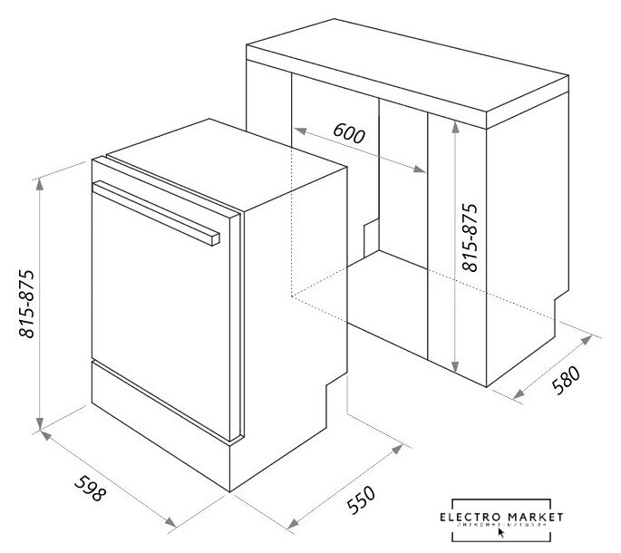 загрузка на 14 комплектов посуды, электронное управление, 8 программ, 59.8×55×82 см, нержавеющая сталь цвет, сушка: конденсационная, индикация на полу: луч
