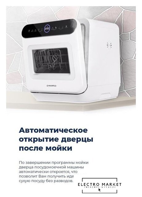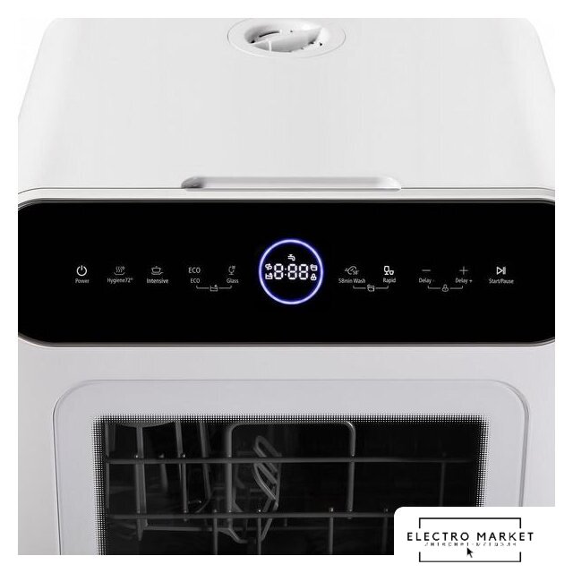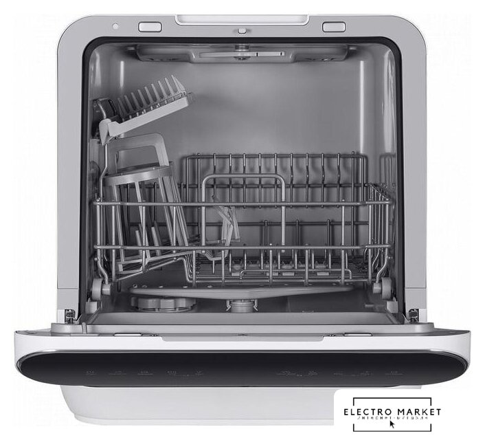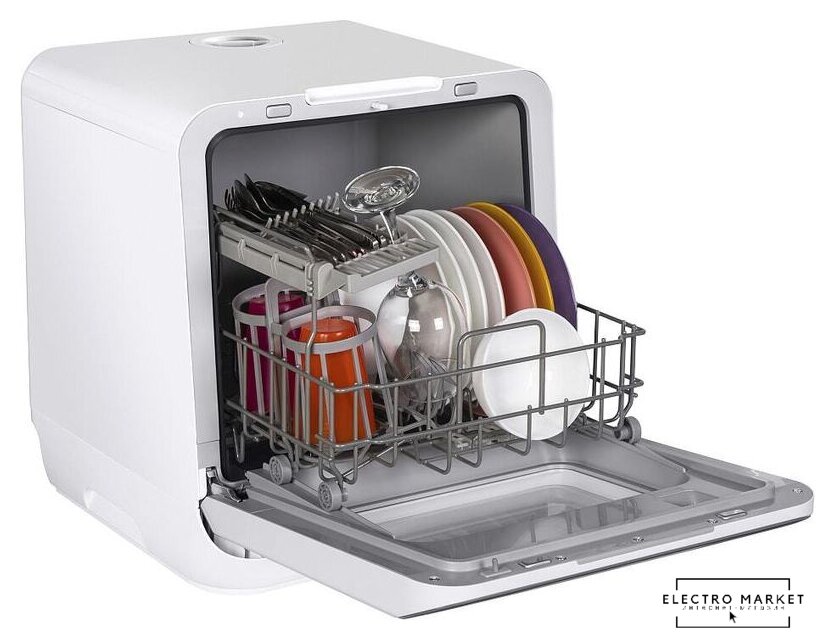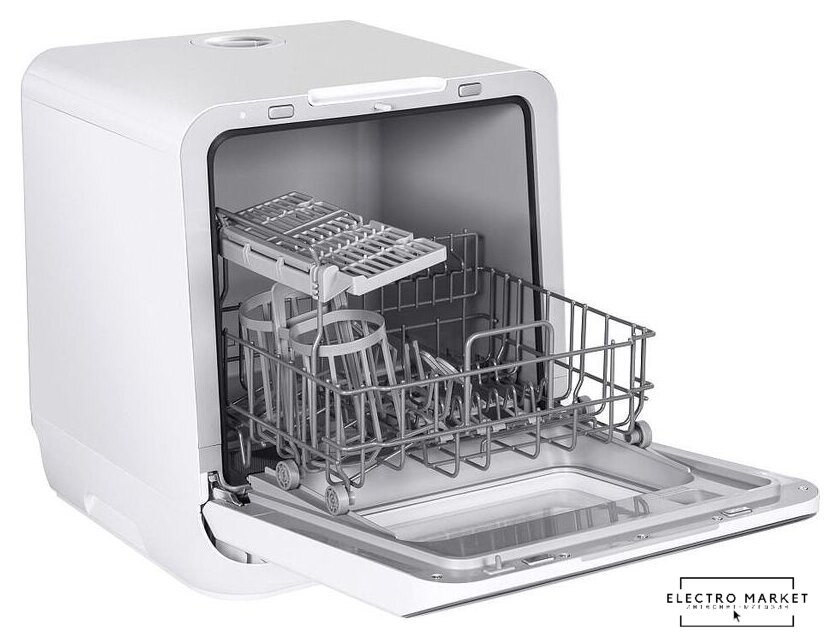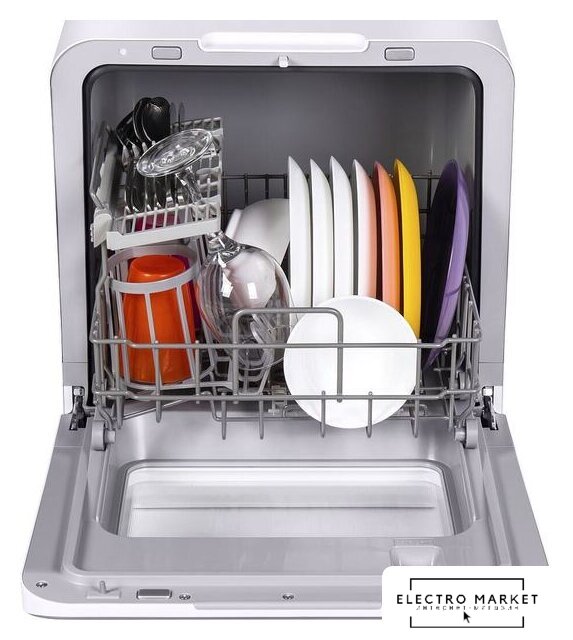 загрузка на 6 комплектов посуды, электронное управление, 6 программ, белый цвет, сушка: стандартная (конденсация), индикация на полу: нет