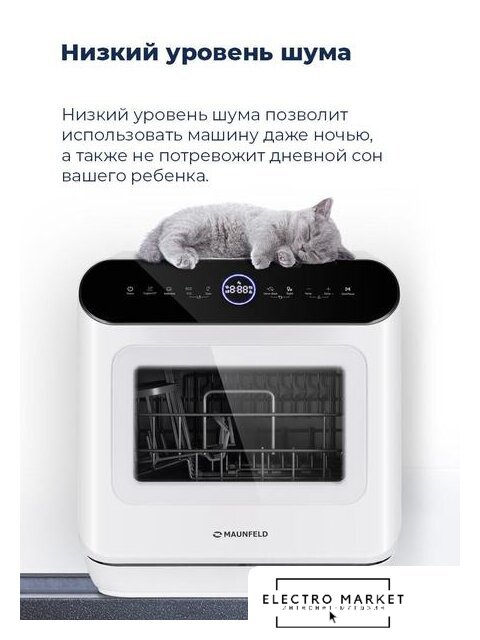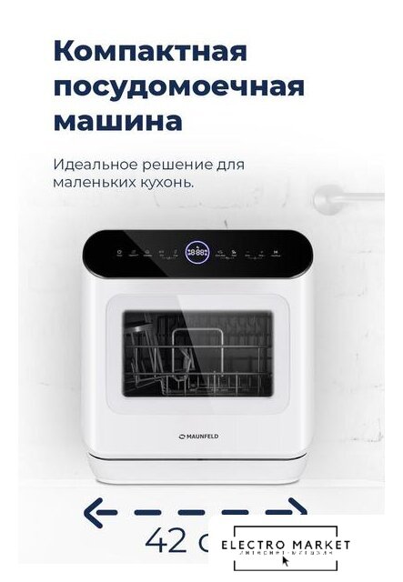 загрузка на 3 комплекта посуды, сенсорное управление, 5 программ, белый цвет, сушка: конденсационная, индикация на полу: нет