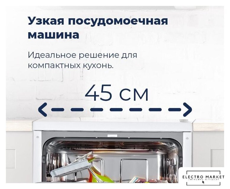 загрузка на 6 комплектов посуды, электронное управление, 6 программ, серебристый цвет, сушка: стандартная (конденсация), индикация на полу: нет