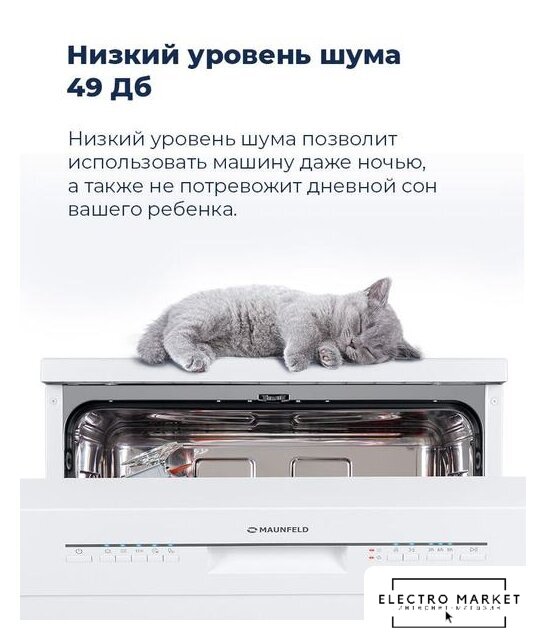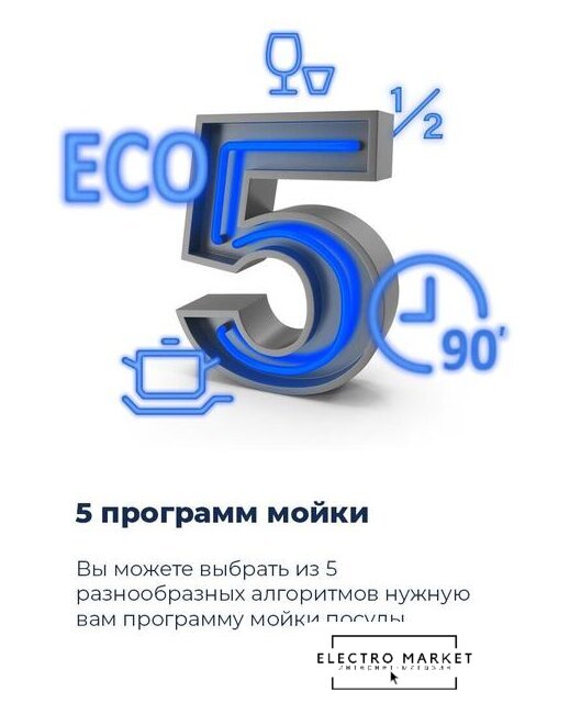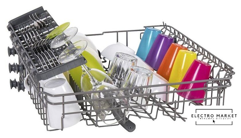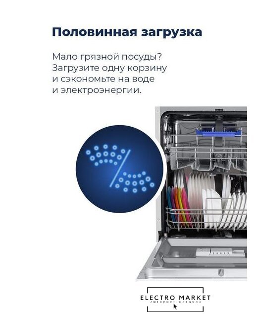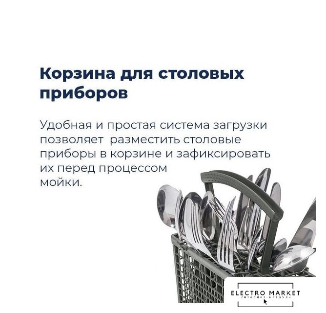 загрузка на 11 комплектов посуды, электронное управление, 5 программ, 44.8×59.8×82 см, серебристый цвет, сушка: конденсационная, половинная загрузка, индикация на полу: нет
