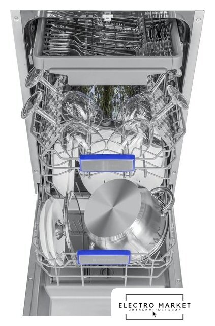 Особенности верхней корзины | регулировка положения по высоте, держатели для бокалов |