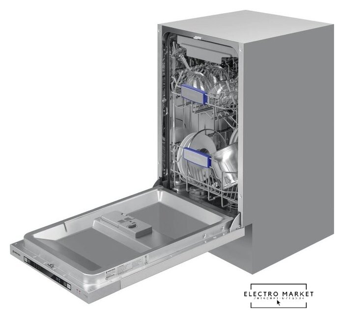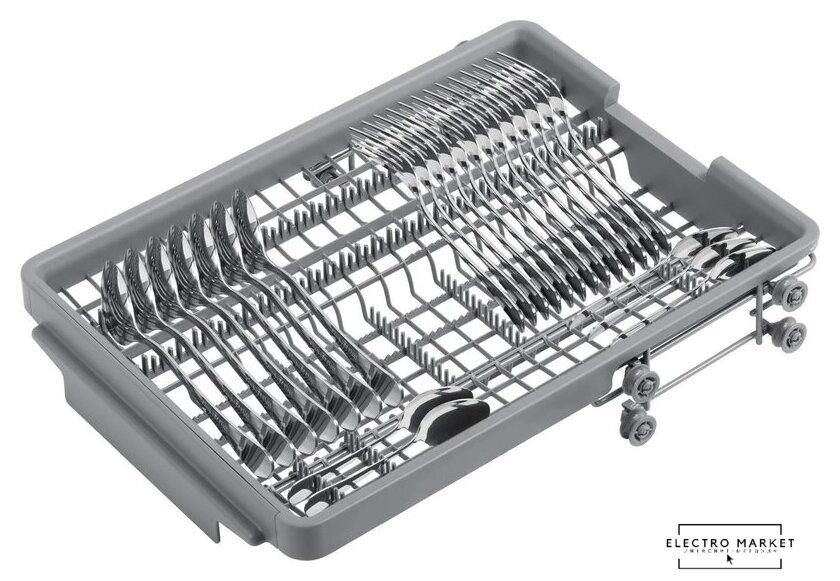 загрузка на 10 комплектов посуды, электронное управление, 5 программ, 44.8x55x82 см, серый цвет, сушка: с теплообменником, индикация на полу: нет