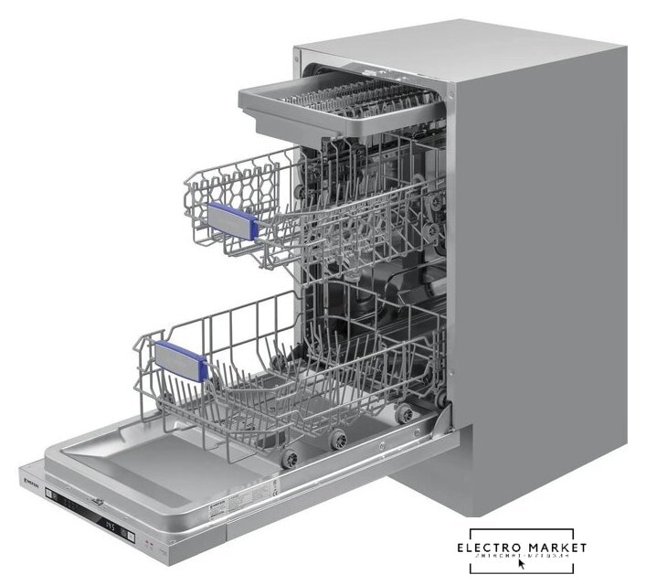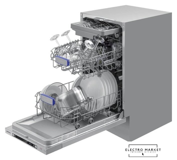 загрузка на 10 комплектов посуды, электронное управление, 4 программы, 44.8×55×82 см, нержавеющая сталь цвет, сушка: конденсационная, половинная загрузка, индикация на полу: нет
