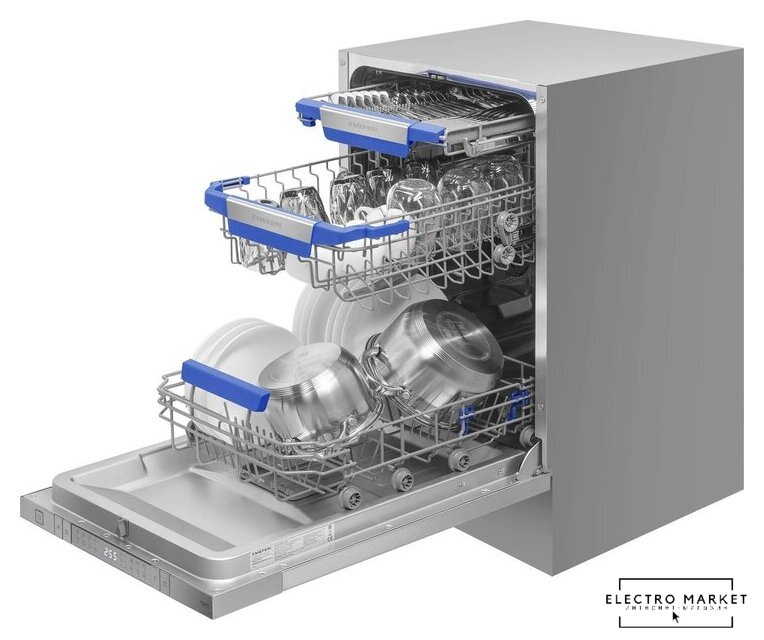 Дополнительные опции | сокращение времени мойки, дополнительная сушка, усиление интенсивности мойки (гигиеническая мойка) |