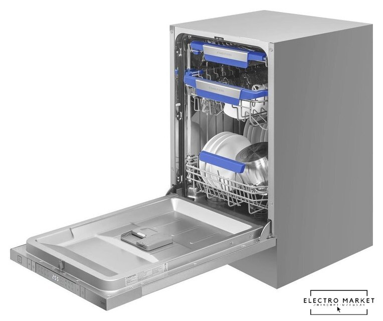 загрузка на 10 комплектов посуды, электронное управление, 6 программ, 44.8x55x81.5 см, нержавеющая сталь цвет, сушка: с теплообменником, индикация на полу: луч